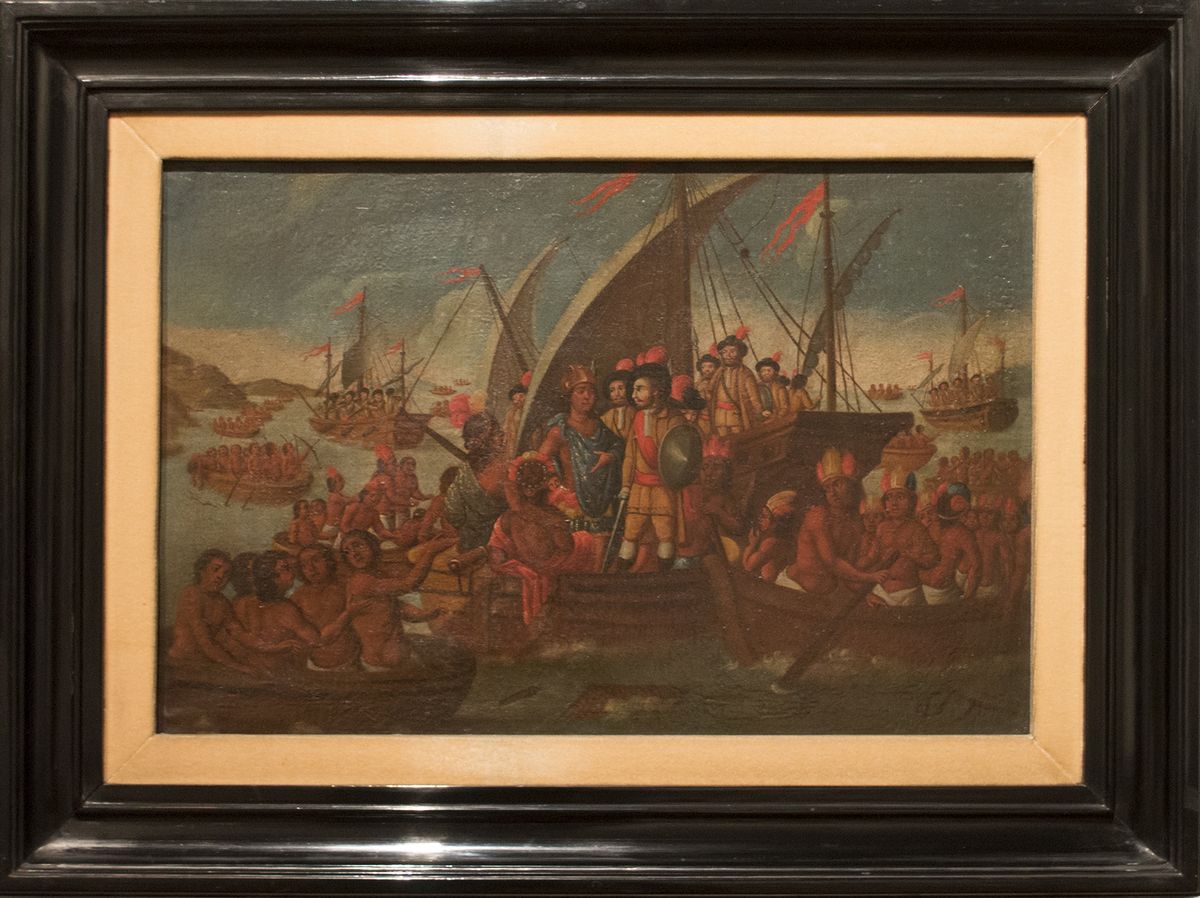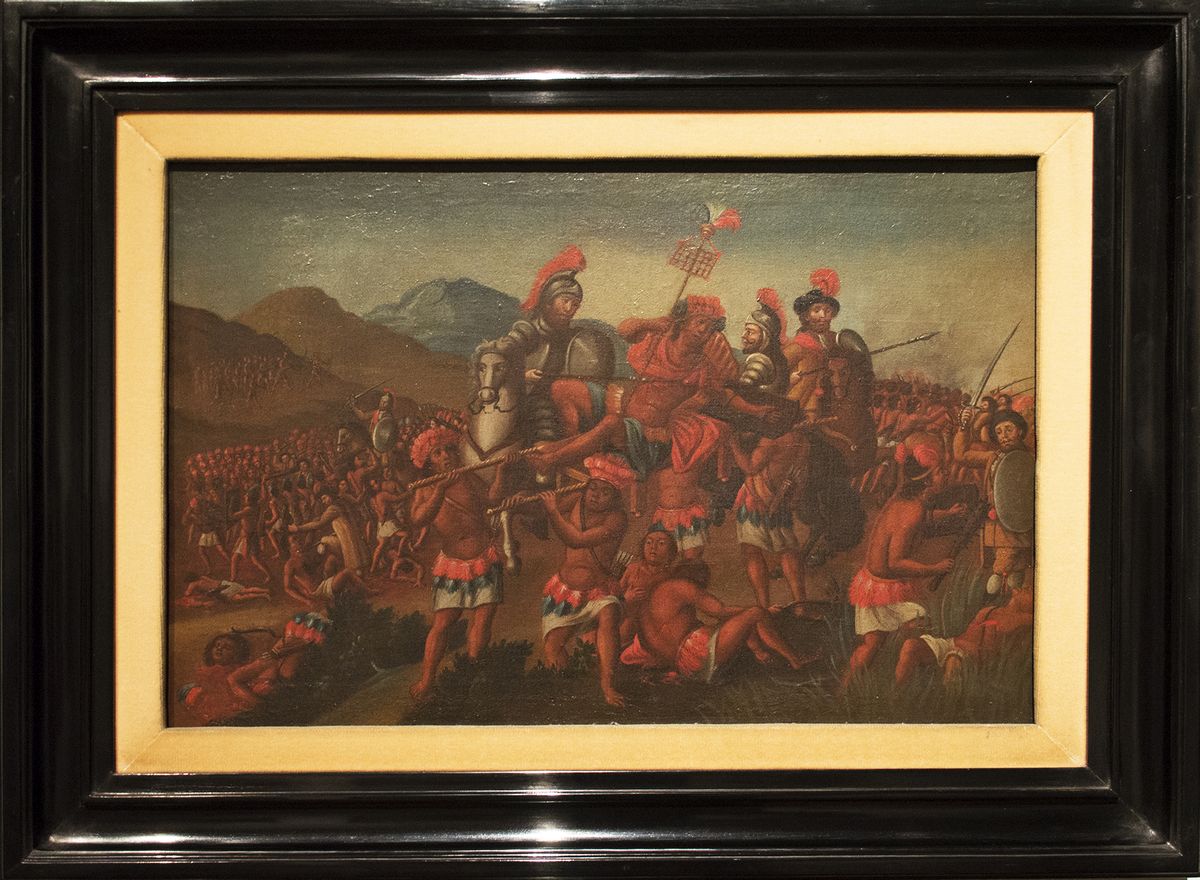 Anónimo La conquista de México Cortés desmantela las naves Entrada de los españoles a Tlaxcala Cortés destruye los ídolos Prendimiento de Cuauhtémoc y Moctezuma acepta vasallaje Óleo sobre tela Colección Banco Nacional de México